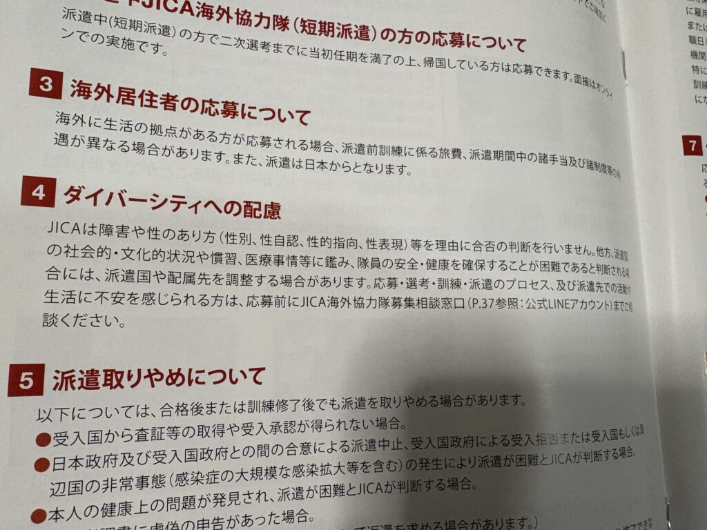 「JICAは障害や性のあり方(性別、性自認、性的志向、性表現)等を理由に合否の判断を行いません。」