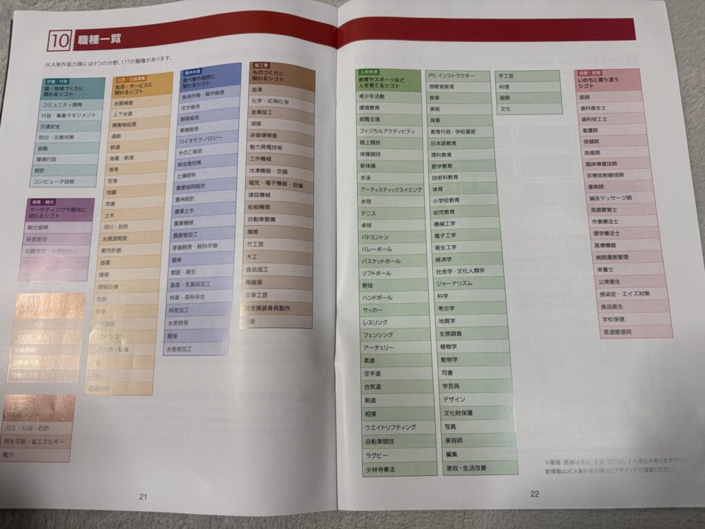 青年海外協力隊では非常に多岐にわたる職種の人材を派遣しています。対象の職種は9分野177職種あります。